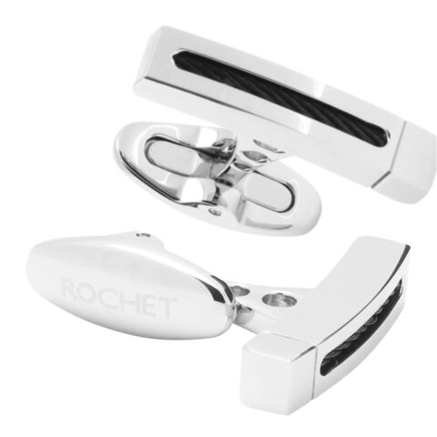 Boutons de Manchettes Homme Rochet Acier Cabestan Bicolore Cable Noir Tressé PVD
