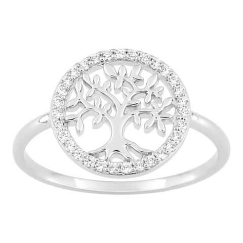 Bague Argent 925/1000 Rhodié Arbre de Vie et Entourage Oxydes Blancs