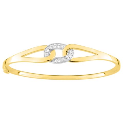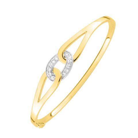 Bracelet Jonc Plaqué Or Bicolore Ouvrant Mailles Ovales Entrelacées et Pavage Oxydes