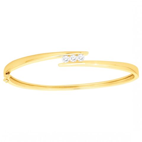 Bracelet Jonc Ouvrant Plaqué Or Jaune Trilogie Oxydes