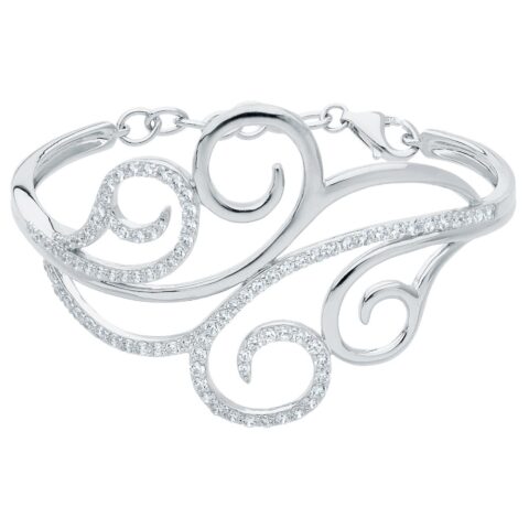 Bracelet Jonc Argent 925/1000 Rhodié Motif Arabesque et Pavage Oxydes