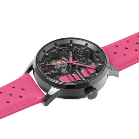 Montre Femme Pierre Lannier Paddock Automatique Cadran Noir et Rose Bracelet Cuir Rose 20mm 145G895