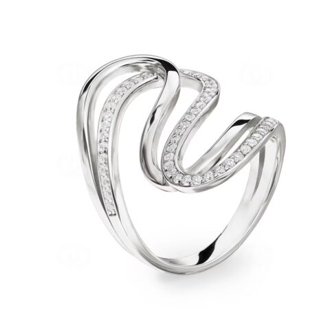 Bague Solitaire Argent Rhodié 925/1000 Oxyde Forme Poire avec Entourage et Deux Rangs Oxydes