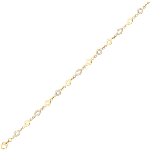 Bracelet Plaqué Or Jaune Mailles Losanges et Pavage Oxydes