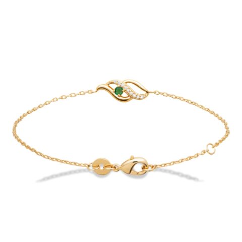 Bracelet Plaqué Or Jaune Oxyde Vert Central Serti 4 Griffes et 1 Rang Oxydes Blancs Sertis
