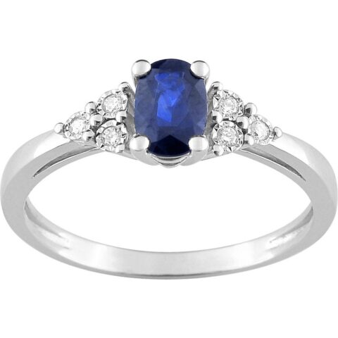 Bague Or Blanc 750/1000 Saphir Ovale et Diamants 0.03ct