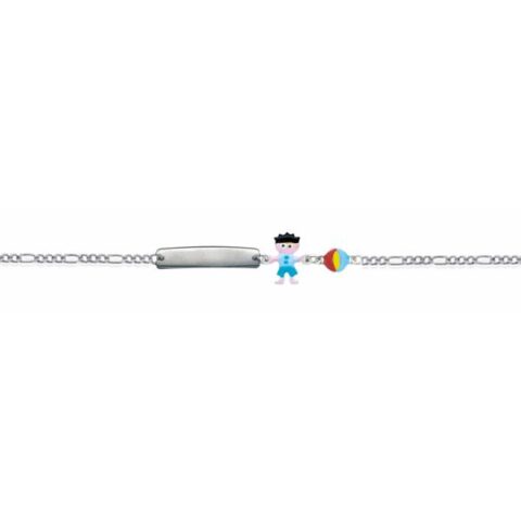 Bracelet Identité Argent 925/1000 Rhodié Maille Alternée 1+3 Petit Garçon et Ballon Laque Multicouleur 17cm