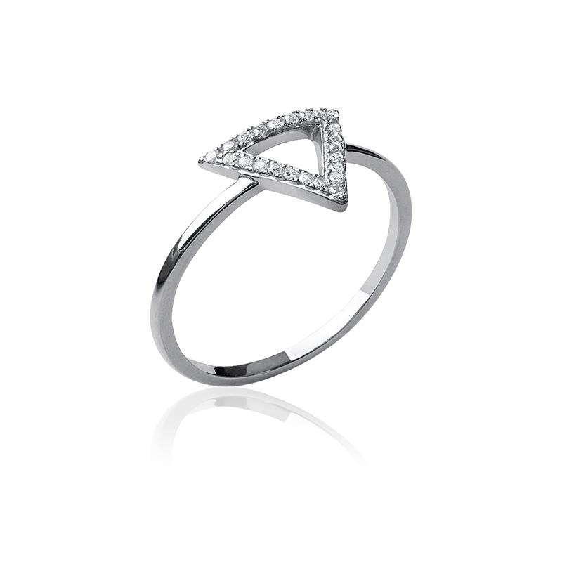Bague Argent Rhodié 925/1000 Forme Triangle Pavage Oxydes