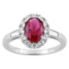 Bague Argent Rhodié 925/1000 Pompadour Oxyde Ovale Rouge Entourage Oxydes Blancs