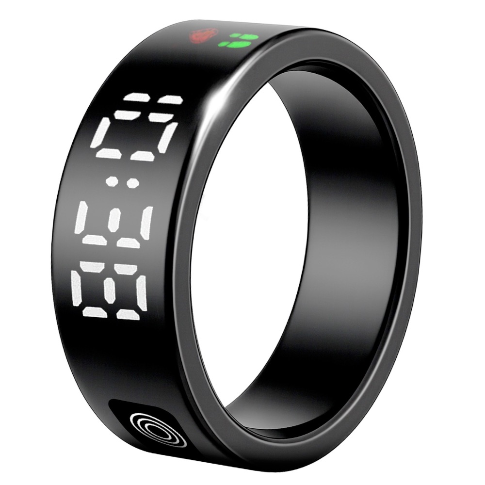 Bague Connectée Toltek Pixel Nera Cadran LCD Acier PVD Noir 8mm