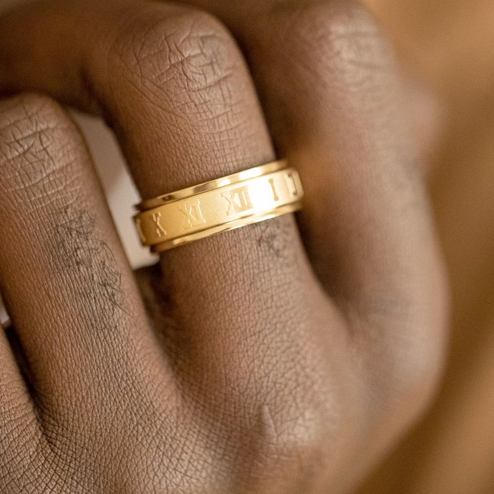 Bague Homme Acier 316L Tournante PVD Jaune Chiffres Romain
