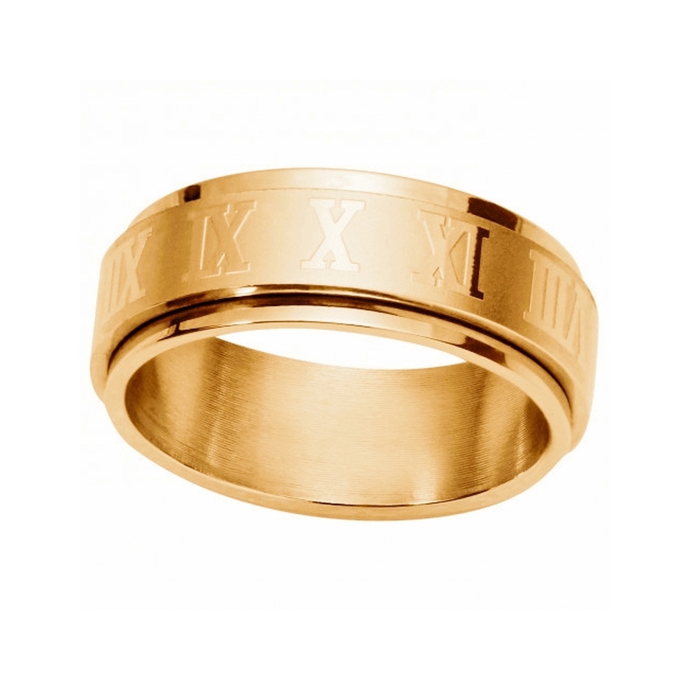 Bague Homme Acier 316L Tournante PVD Jaune Chiffres RomainBague Homme Acier 316L Tournante PVD Jaune Chiffres Romain