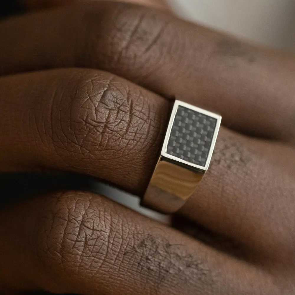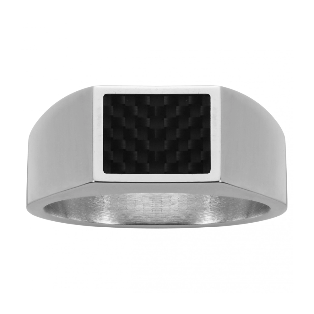 Bague Homme Acier Chevalière avec Carbone