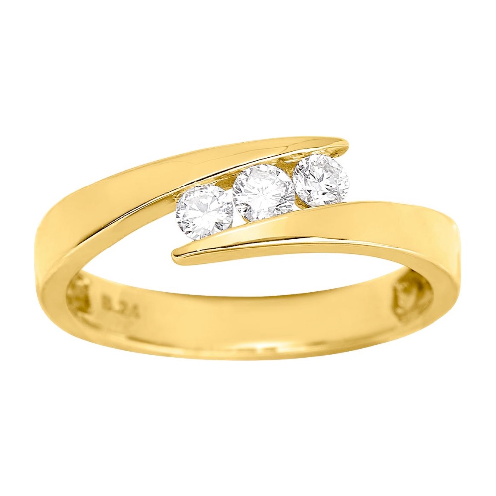 Bague Or Jaune 750/1000 et Trilogie Diamant 0.24ct