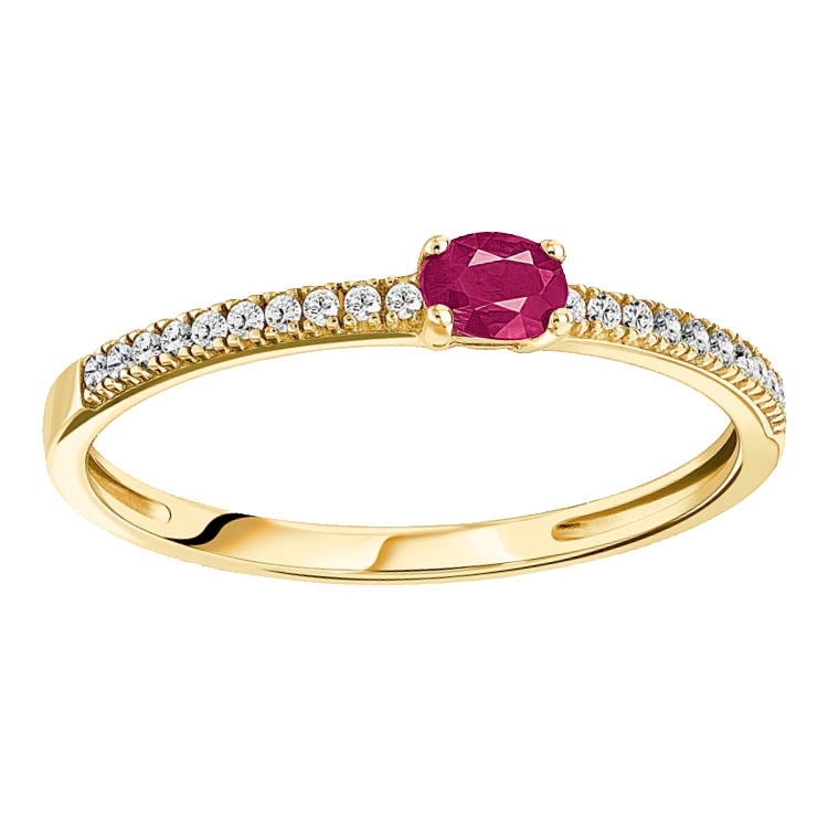 Bague Or Jaune 750/1000 Rubis Ovale Serti Griffe et Pavage Oxydes