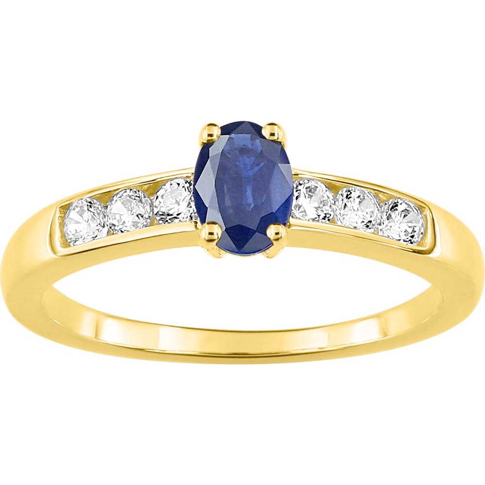Bague Or Jaune 750/1000 Saphir Ovale et Oxydes Serti Rail