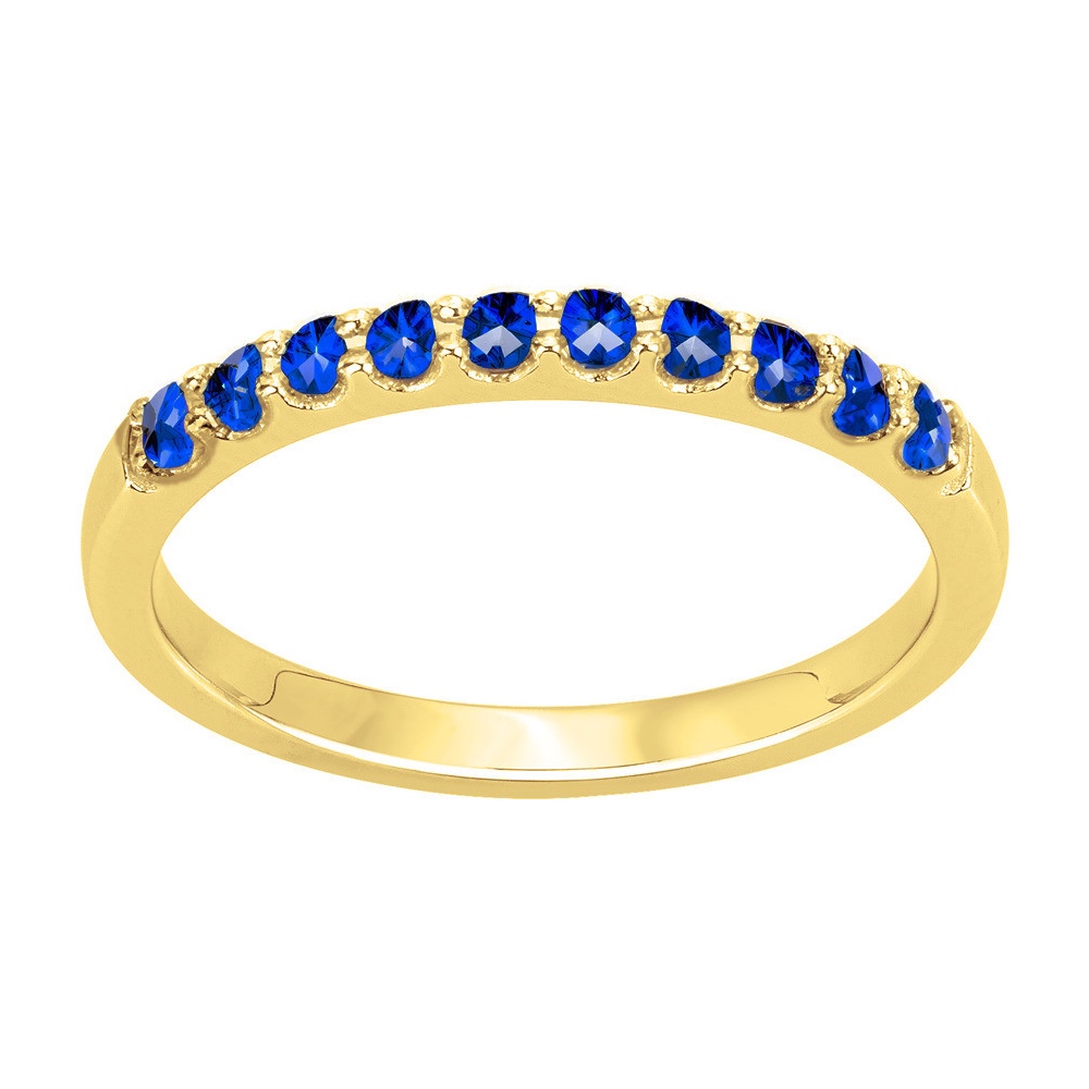 Bague Plaqué Or Jaune Un Rang Pavage Oxydes Bleu Saphir