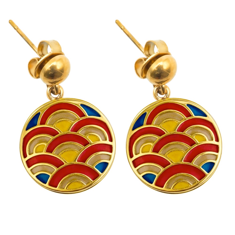 Boucles d’oreilles Acier Doré Arc-en-ciel et Résine Multi-couleurs Diamètre 13mm