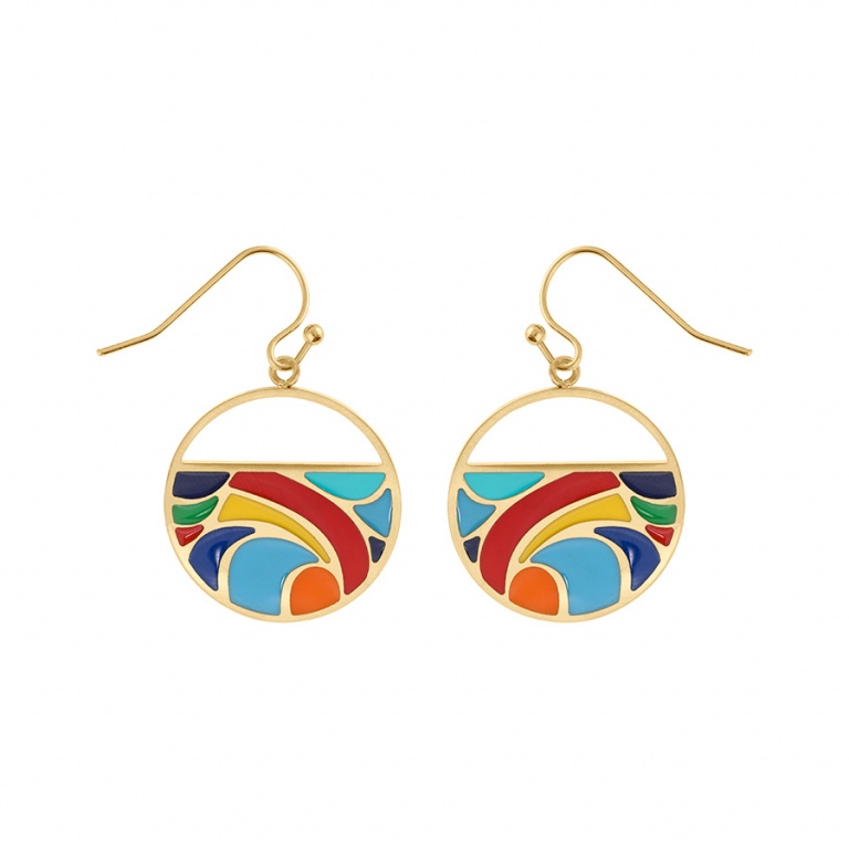 Boucles d’oreilles Acier Doré Stella Mia et Résine Multicouleurs Diamètre 23mm