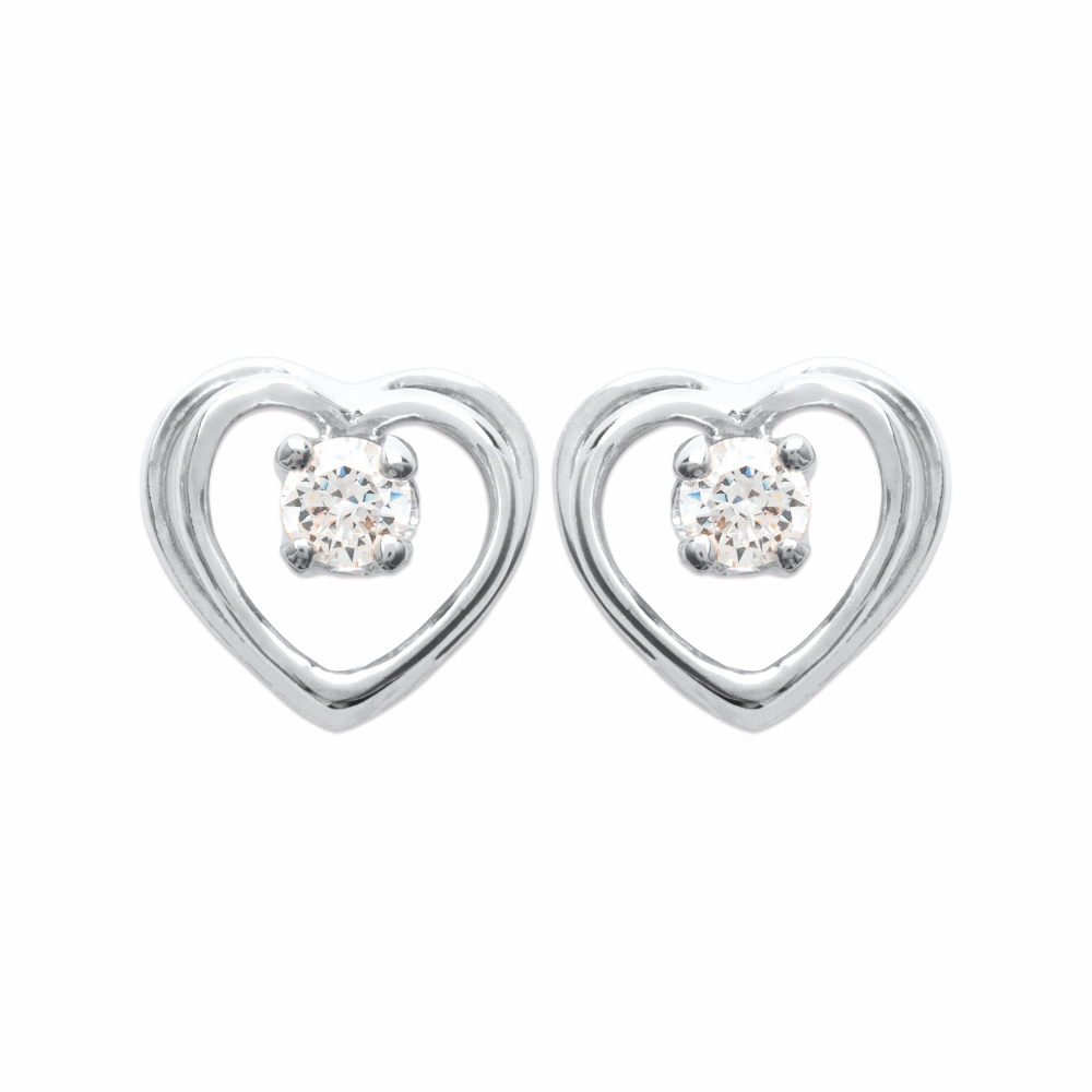 Boucles d’oreilles Argent 925/1000 Rhodié Coeur et Oxyde Serti 4 griffes