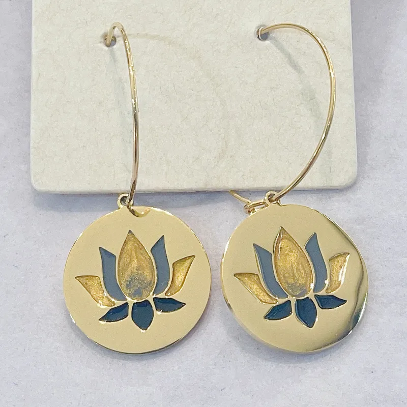 Boucles d’oreilles Créoles Fashion Steel Acier Doré Fleur de Lotus