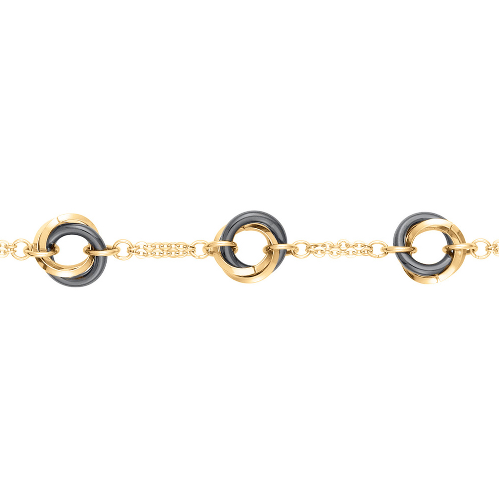 Bracelet Fashion Steel Acier Doré et 3 Motifs Ronds Céramique Noire
