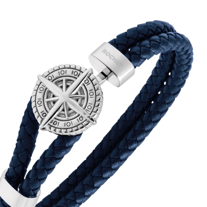 Bracelet Homme Rochet Cap Horn Acier et Cuir Tressé Bleu HB0806