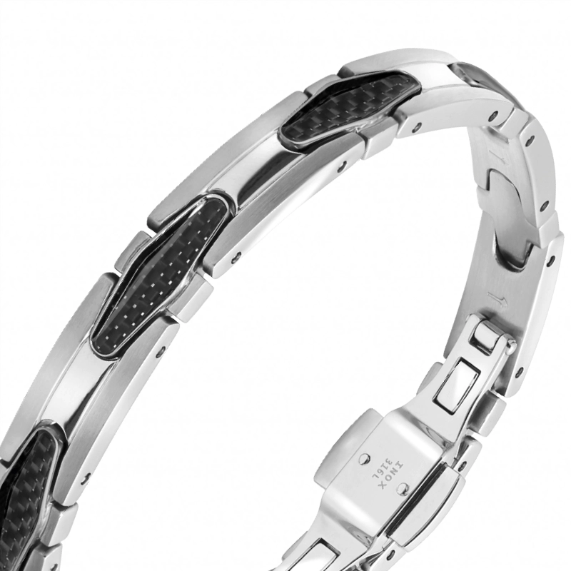 Bracelet Homme Rochet Gatsby Acier 8mm Bicolore Noir et Carbone HB8181