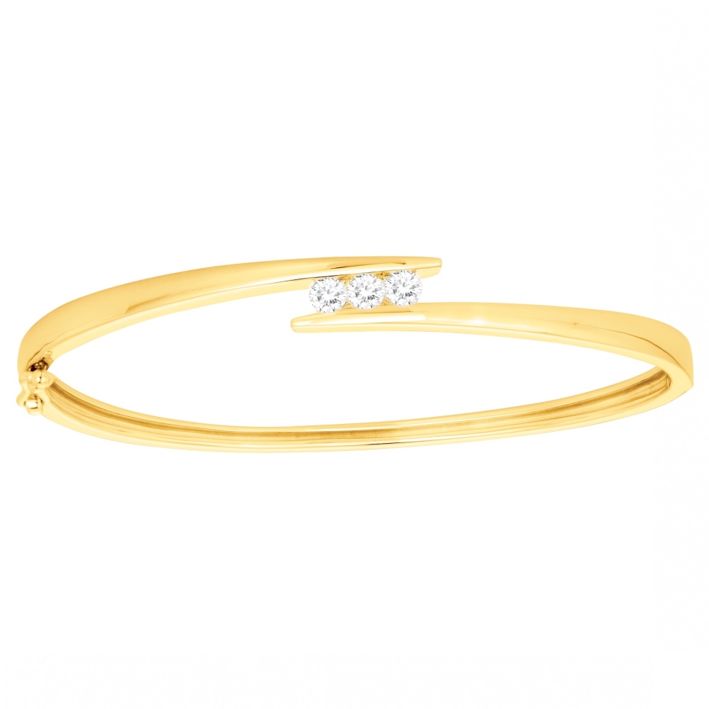 Bracelet Jonc Ouvrant Plaqué Or Jaune Trilogie Oxydes