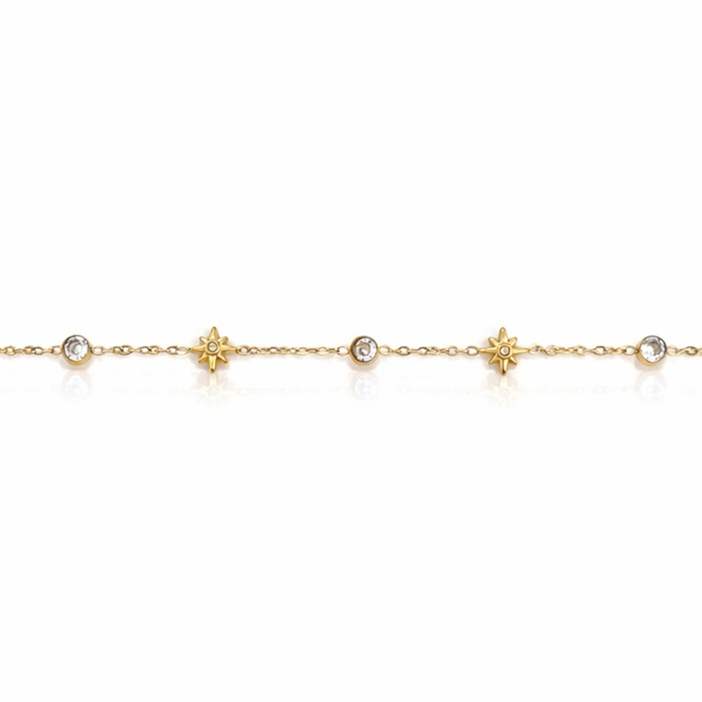 Chaine de Cheville Fashion Steel Acier Doré Motifs Soleil et Cristal Synthétique