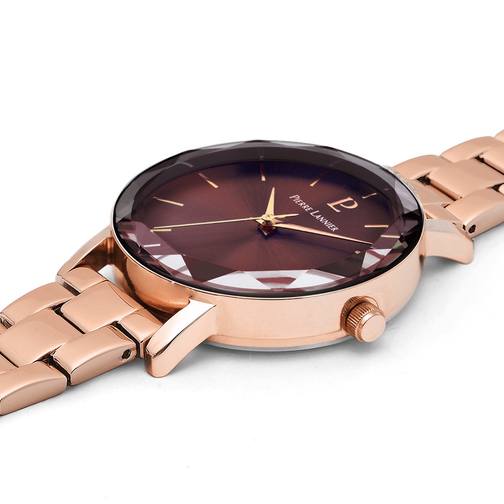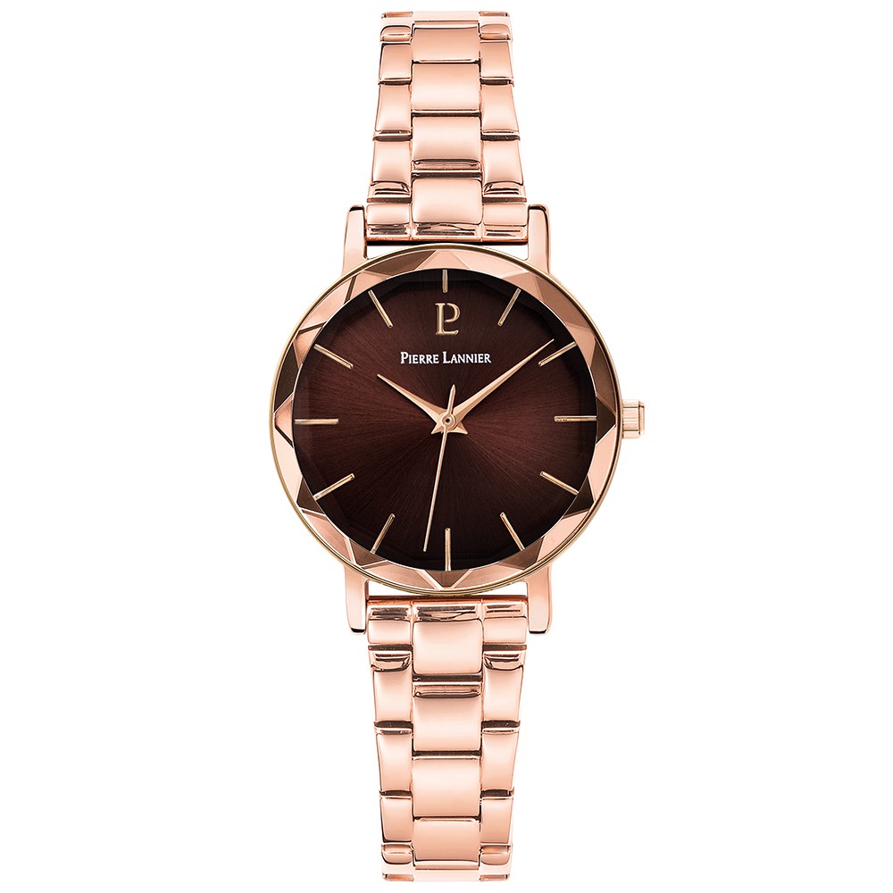 Coffret Montre Femme Pierre Lannier Multiple Cadran Chocolat Bracelet Acier Doré Rose et Bijoux 175F988