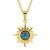 Collier Fashion Steel Acier Doré Motif Soleil et Turquoise Bleue Synthétique