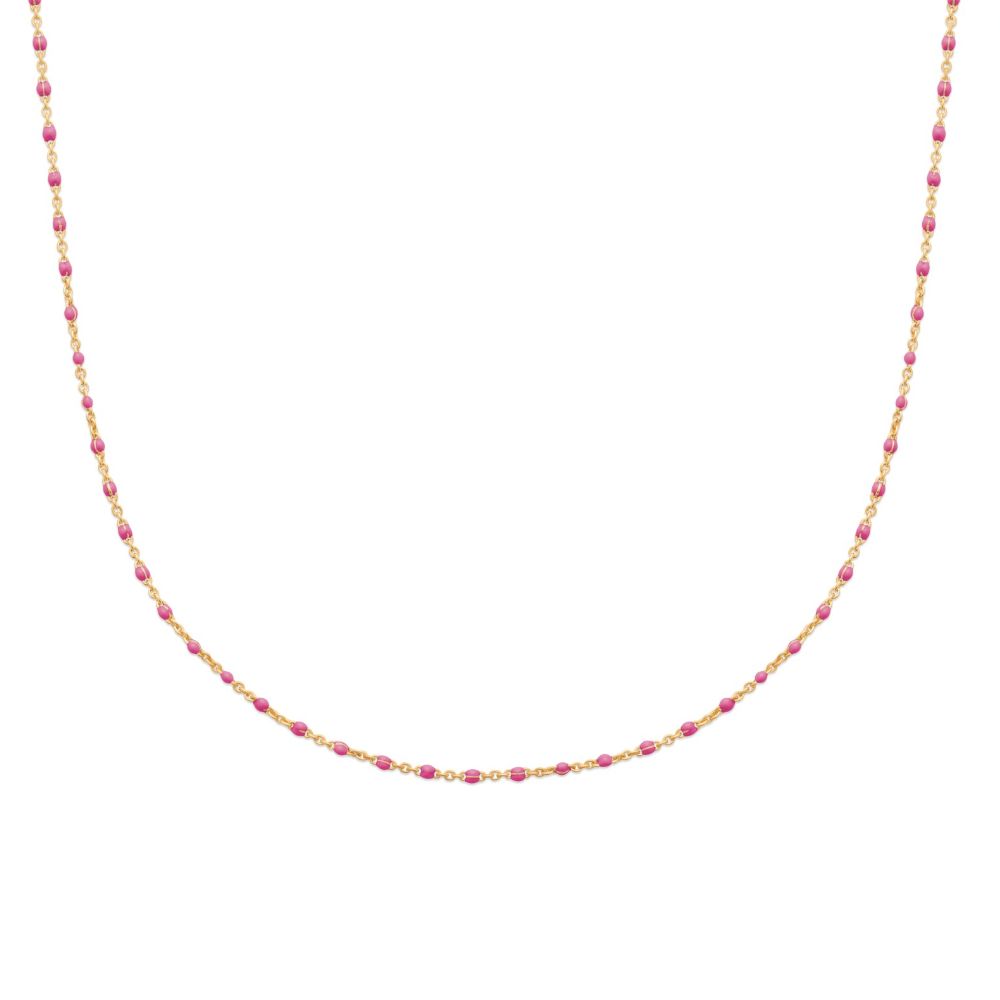 Collier Boho Plaqué or Jaune et Résine Rose
