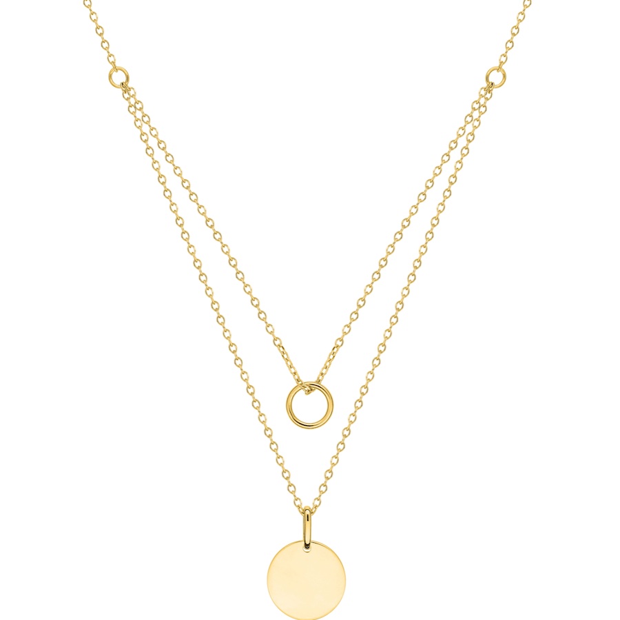 Collier Double Plaqué Or Jaune Jeton et Anneau Longeur 42+3cm