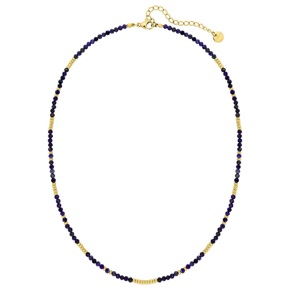 Collier Fashion Steel Acier Doré Boules Dorées et Perles Lapis Lazuli 2mm