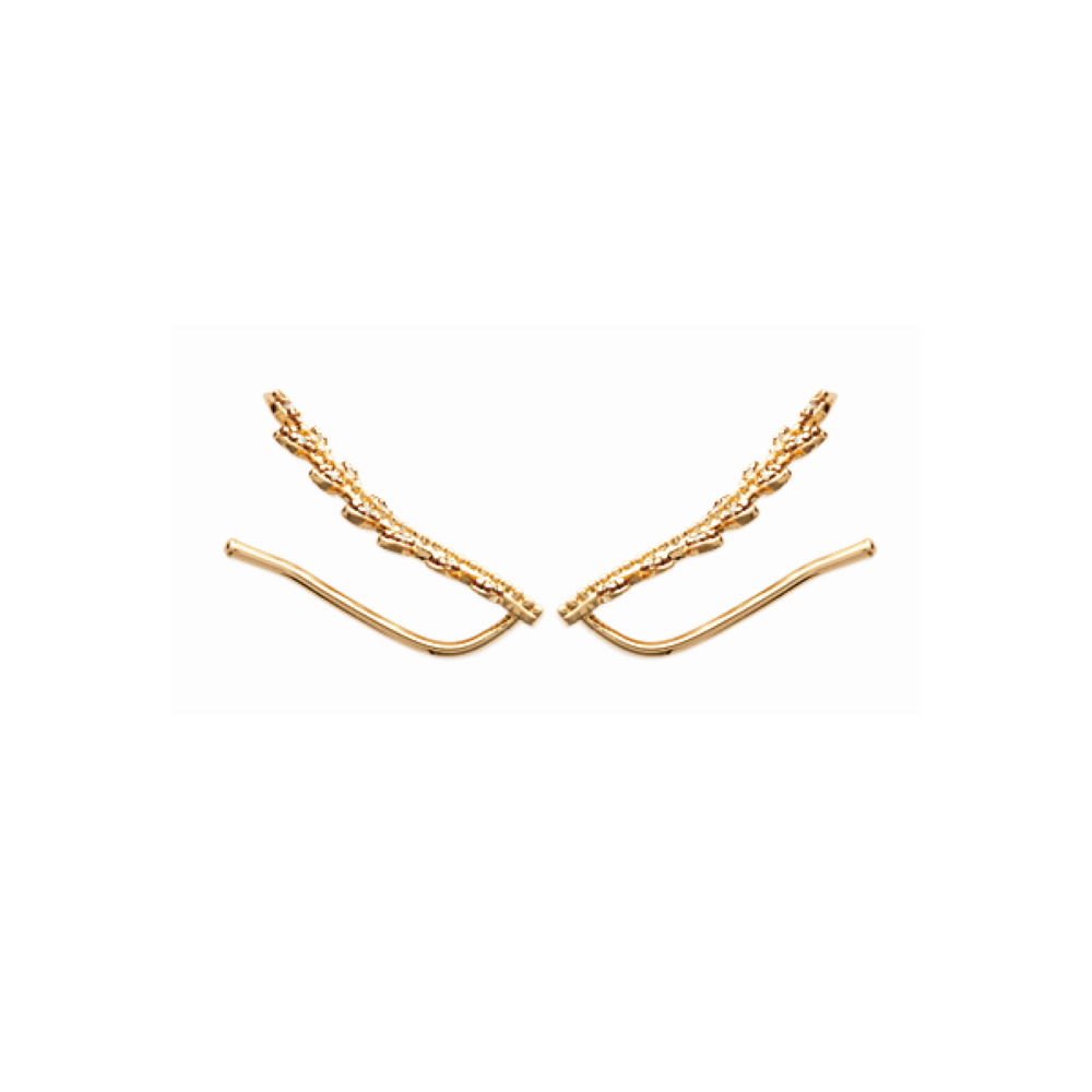 Contour d’oreille Plaqué Or Jaune Feuilles de Laurier et Oxydes