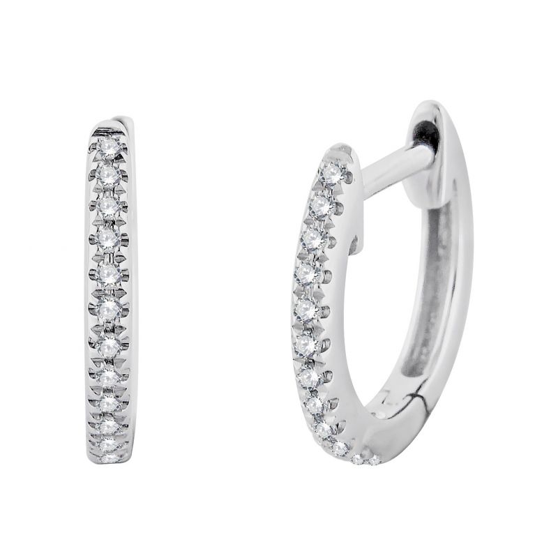 Créoles Célia Or Blanc 750/1000 un Rang Diamants 0.06ct Hsi Serti Griffe Système Ouvrant 11mm