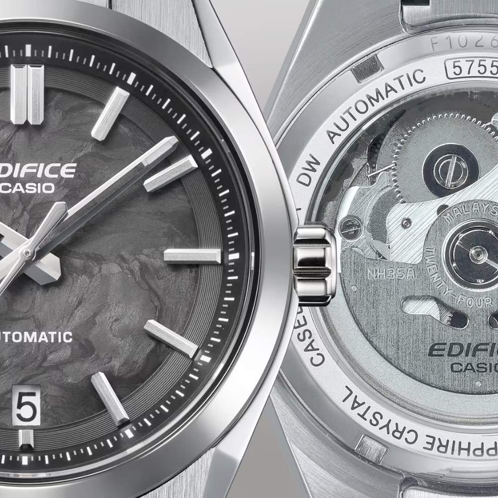 Voici la EFK-100CD, une montre Casio EDIFICE haut de gamme à trois aiguilles, réalisée en carbone forgé.