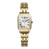 Le boîtier en acier inoxydable, entièrement plaqué PVD or jaune, est d’une grande finesse (6,75 mm). Il préserve un mouvement à quartz suisse, reconnu pour sa fiabilité. Protégée par un verre saphir et étanche à 50 mètres, cette montre est aussi belle que fonctionnelle. Le bracelet doré, aux maillons brillants, prolonge l’éclat du boîtier avec cohérence et élégance.