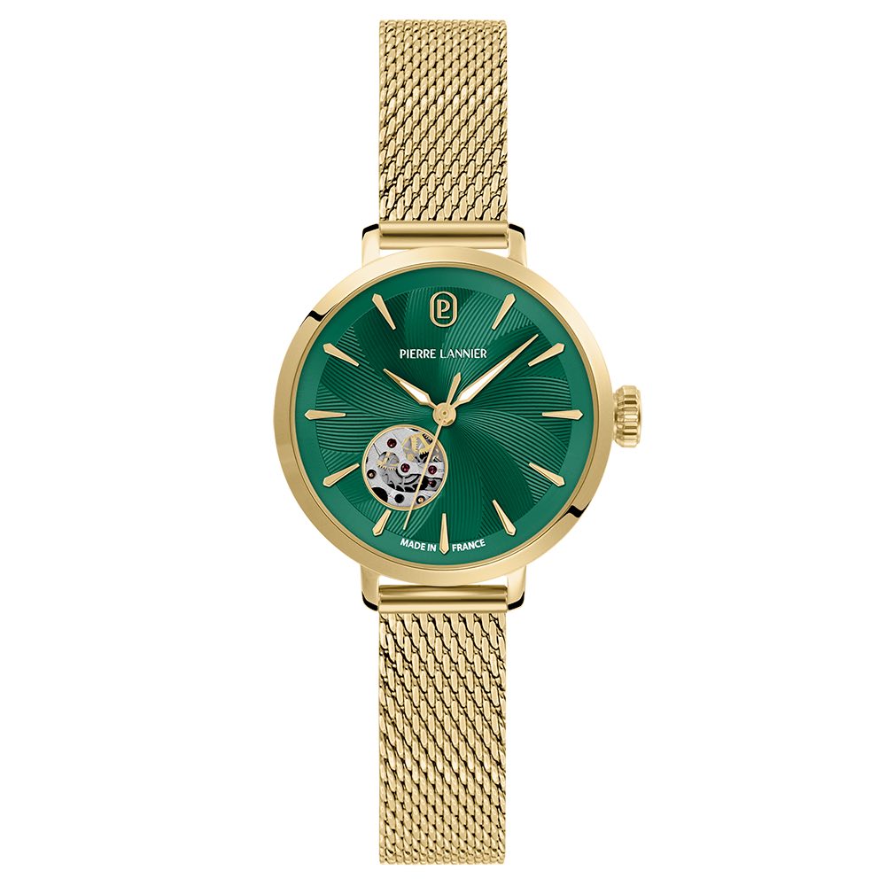 Montre Femme Pierre Lannier Automatique Soline Acier Doré Cadran Vert Bracelet Acier Doré Milanais 12mm 139L572
