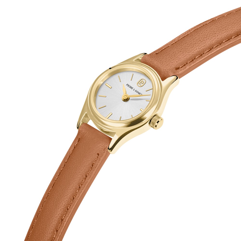 Montre Femme Pierre Lannier Pya Doré Cadran Argenté Bracelet Cuir Brun 10mm 091M524