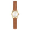 Avec ses tonalités classiques et lumineuses, la montre femme Pierre Lannier Pya 091M524 propose une interprétation au format mini. Cette montre quartz de la collection Pya se caractérise par un boîtier rond doré de 20 mm, un cadran blanc, des aiguilles et index dorés, ainsi qu’un bracelet en cuir brun de 10 mm.