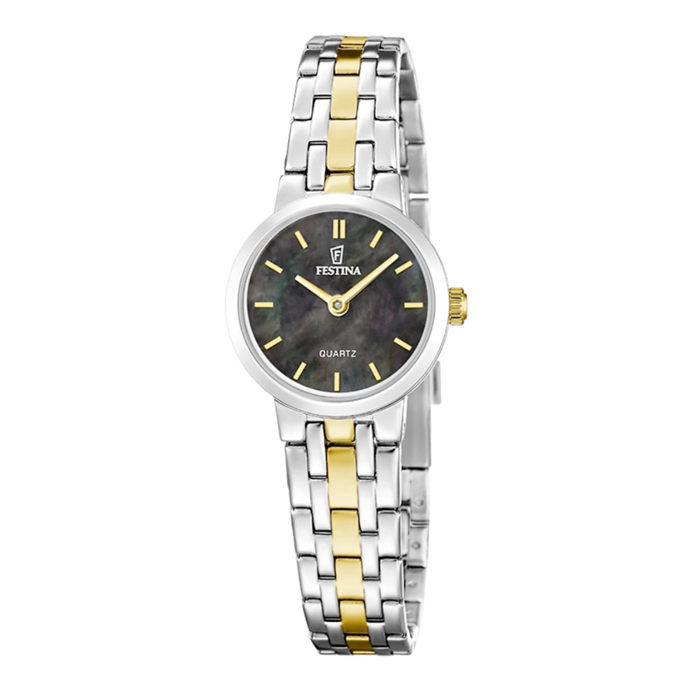 Montre Festina Femme Bracelet Acier Bicolore Collection Mademoiselle Fond Noir Nacre Nuances de Vert F20747/4