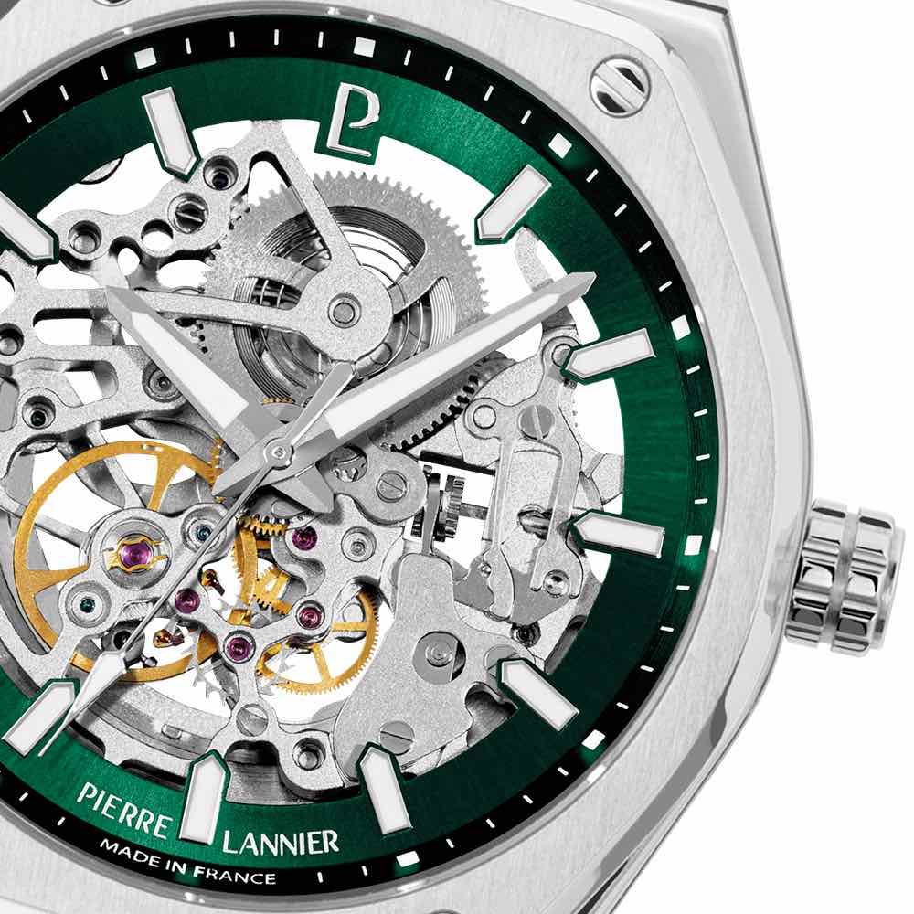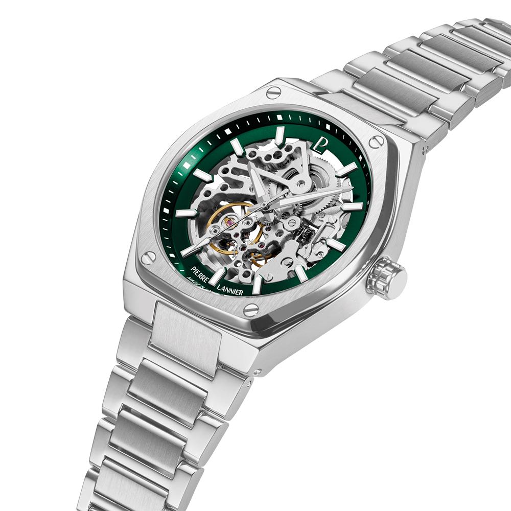Montre Homme Pierre Lannier Automatique Copilote Acier Cadran Vert Bracelet Acier 22mm 308G171