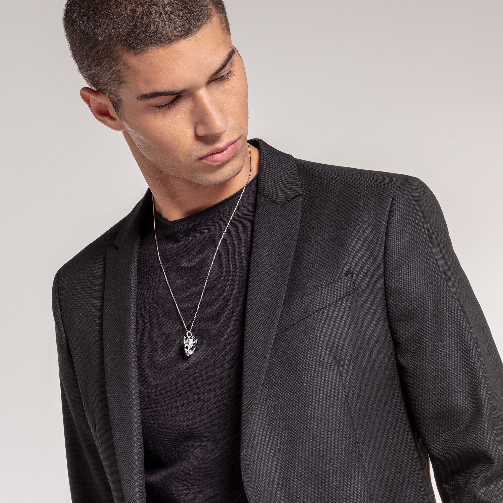 Bijou chargé de sens : ce pendentif en tête de mort est décliné dans le design « skull » résolument rock de THOMAS SABO. Fait main, avec une couronne incrustée de pierres, il symbolise la force et la puissance. Un bijou à l’attitude affirmée qui attire forcément tous les regards.