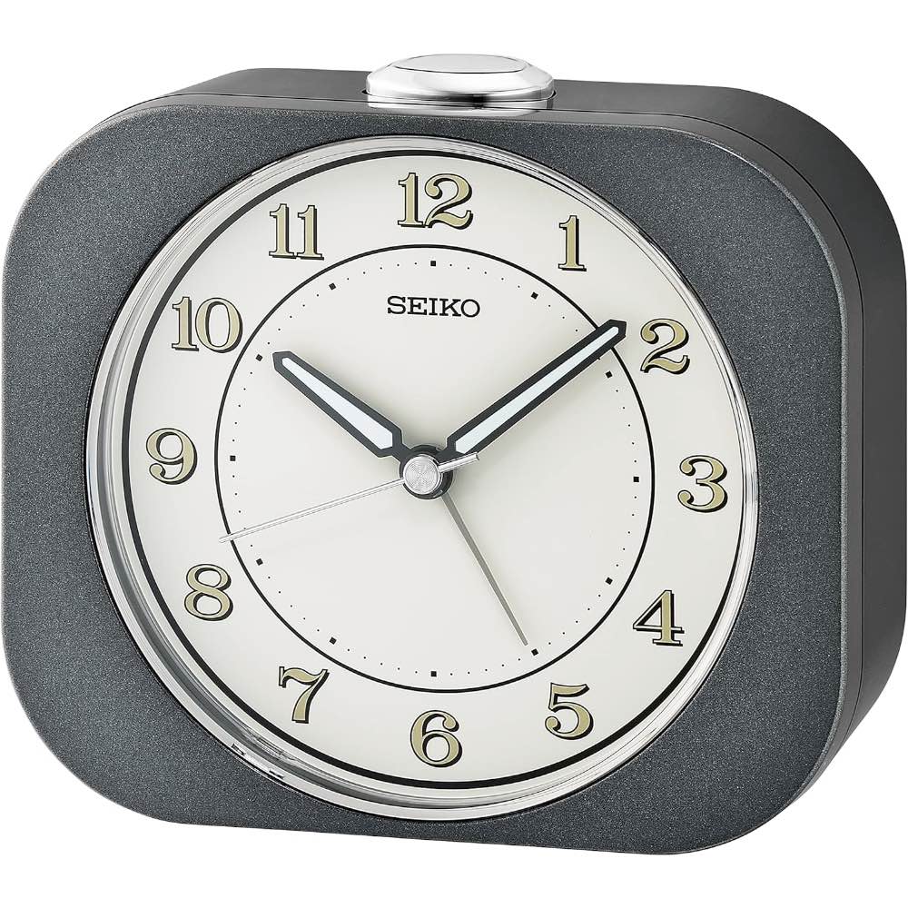 Ce réveil affiche un petit prix mais profite de la qualité Seiko, notamment avec ses aiguilles au revêtement lumibrite breveté et sa trotteuse silencieuse à mouvement continu. Ce réveil dispose d’une alarme répétitive et est équipé d’un bouton “lumière” pour encore plus de visibilité.